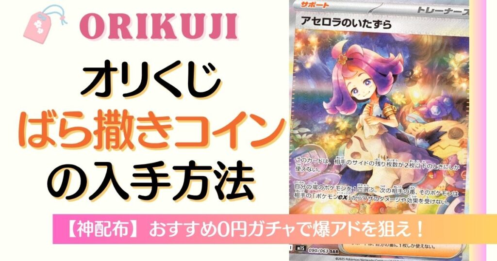 オリくじのばらまきコインって無料でもらえるの?そんな疑問を解消!限定コインの入手方法と逆転ガチャや0円ガチャなどおすすめガチャもご紹介。当たりやすいと話題の神配布コインであなたも爆アドをゲットしましょう。【攻略】オリくじ入場制限ガチャが狙い目!還元率100%超えで高額カードGET
