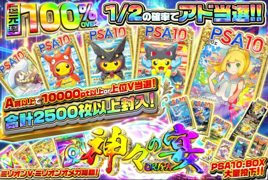 総還元率95%オーバーや80%ループガチャなど、プレミアムオリパが満載。
