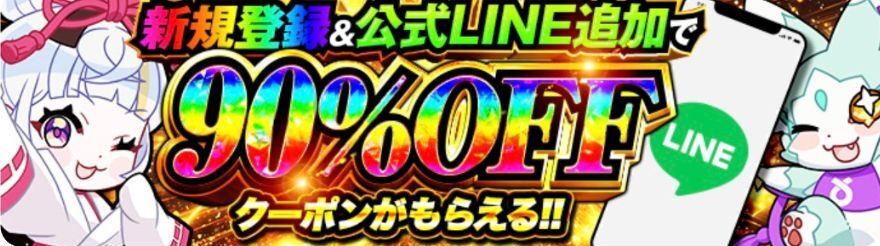 | 特典コード | 公式LINE | コイン最大50%割引 100ポイント獲得 |
