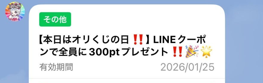 オリくじの特典コード(クーポンコード)は、公式LINEで毎日配布されるお得なキャンペーン。